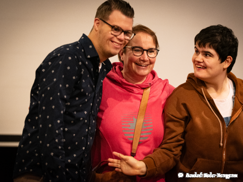 Simon: Über die Special Olympics bin ich zum Casting für „Weil wir Champions sind“ gekommen. Sven Harjes hat mich unterstützt. Er ist der Regieassistent bei dem Film und mein Coach. Ich musste zwei Castings machen. Dafür habe ich Text auswendig gelernt und Reaktionen zum Text geübt. Nach dem finalen Casting haben sie neun Menschen mit Behinderung ausgesucht, die bei dem Film mitspielen durften. Die Filmfirma hat bei meiner Mutter angerufen. Sie hat mich dann auf der Arbeit angerufen und gesagt: ‚Hallo Matze, Du hast die Rolle!‘“
